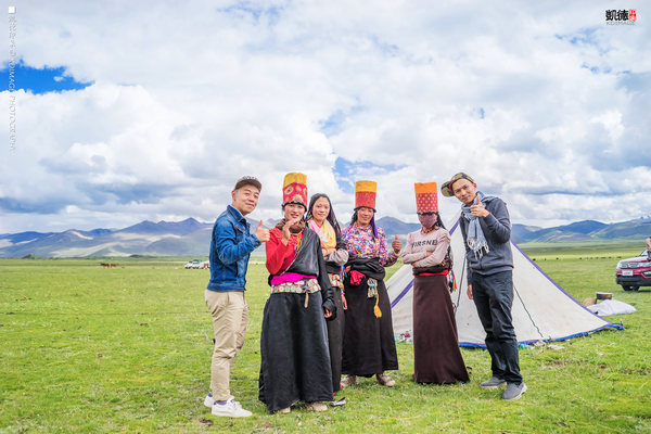如此辽阔的场景,让人不禁放声歌唱。剧组的化妆师婷婷在唱了一曲《青藏高原》,把周边放牧的藏民朋友们都吸引过来了。大家就像开嘉年华一样,在草原上一起跳舞。其实蛮羡慕牧民们的生活,自由自在,奔放热情。