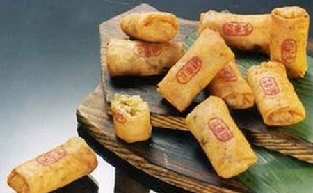 春饼也是潮州小食之佳品。其外观呈长方形,金黄悦目,外酥内嫩;味浓香溢,美味爽口。春饼古称“春卷”,我们的祖先为祈丰收康乐吉祥幸福,便在立春日制作此食品祭天。