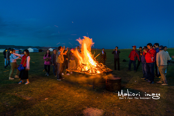 夜色袭来,天空的云彩也被阳光染上了一层绯红,大地开始沉睡,山上放牧归来的牛羊时不时发出几声叫唤。但是,一场别开生面的草原party却即将上演。